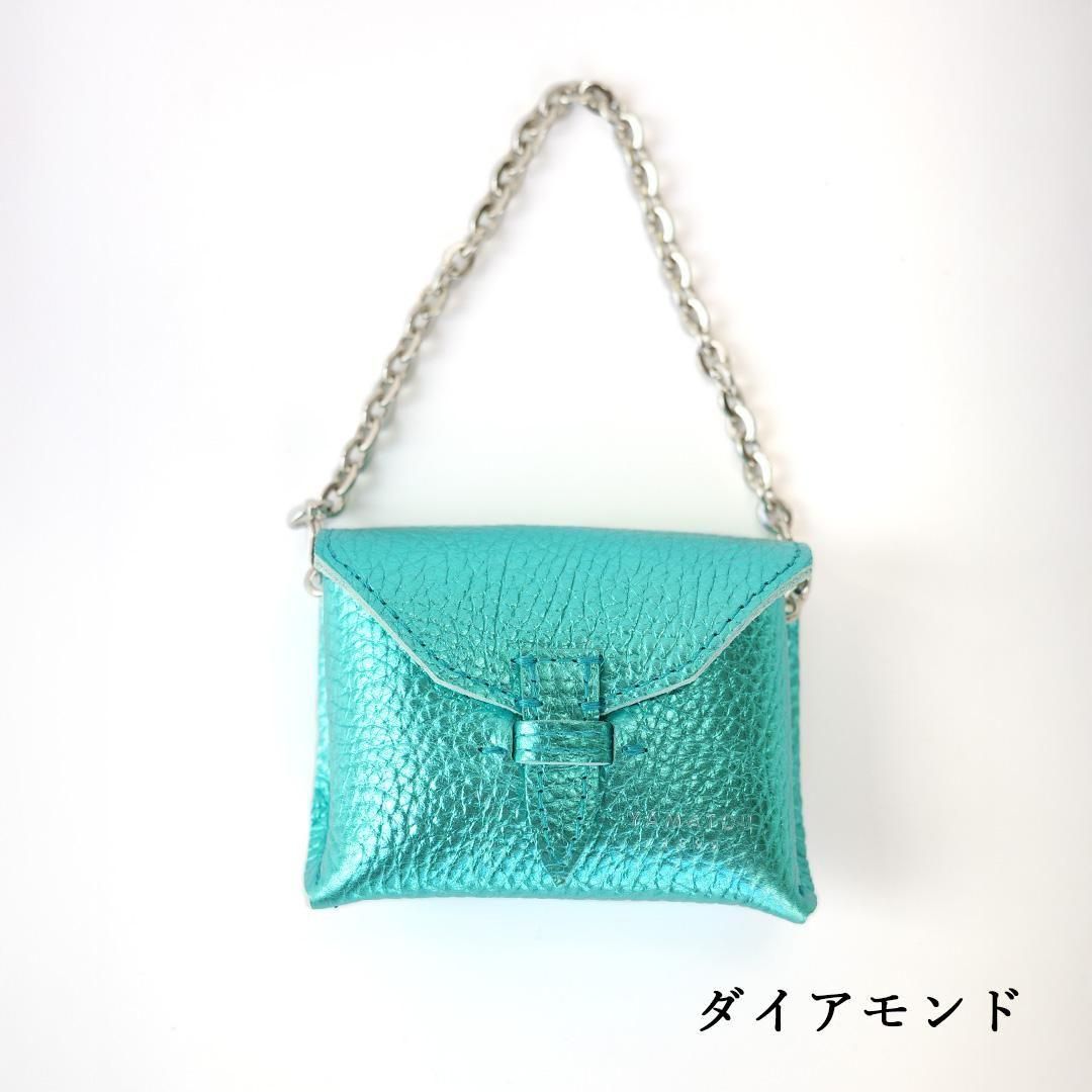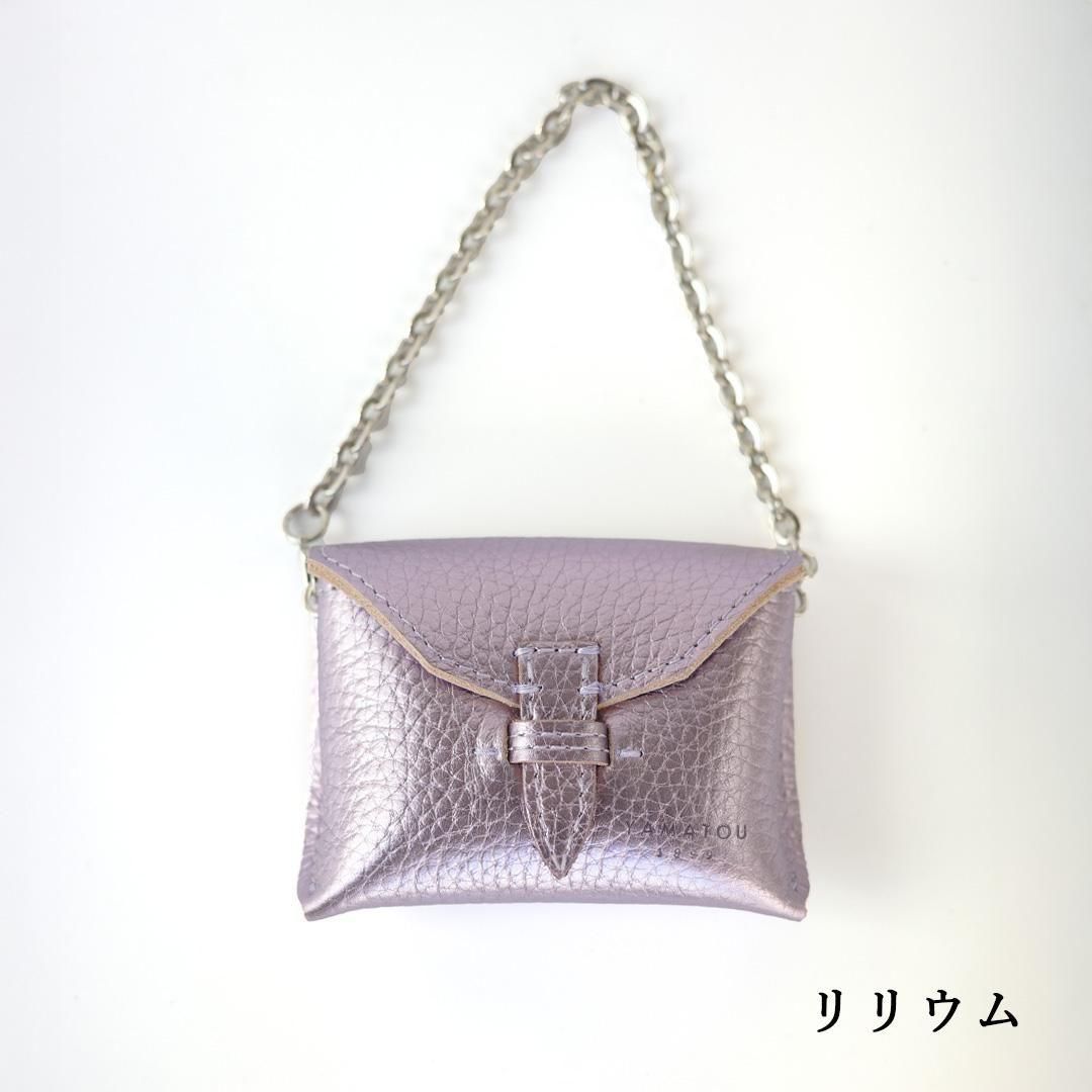 何が入るってことはなくて、キャンディとか、イヤホンとか、ちょっとしたものを入れることしかできないマイクロバッグ。普段使用しているお鞄にワンポイントとしてつけたりするのがかわいいです。チェーンの片側はナスカンになっているので、持ち手への取り付けも簡単。ベルトループに通してファッションを楽しむのも素敵です。